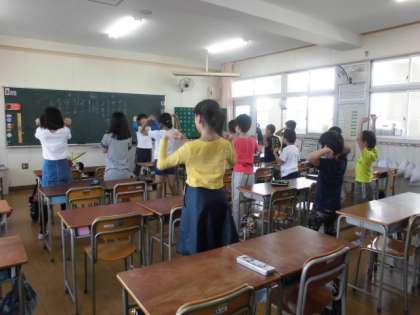 運動委員会は、運動会に向けてラジオ体操第一の確認をしながら練習をしていました。