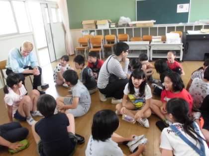 5年生もマーク先生の支援で、自己紹介の仕方を学んでいました。