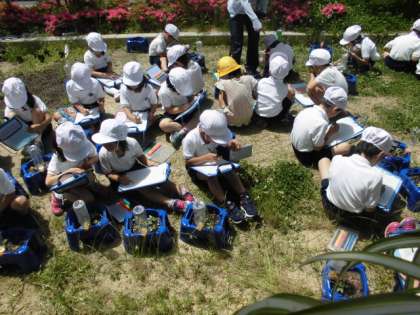 1年生が生活科でアサガオの観察を行っていました。