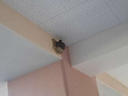 先日紹介しましたツバメの巣が完成したようで、巣の中にツバメが入っていました。