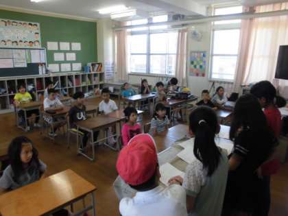 それぞれの教室で、いろいろと工夫しながら応援の仕方について説明していました。