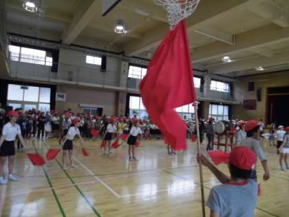 応援合戦の練習を一通り行いました。