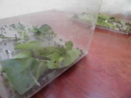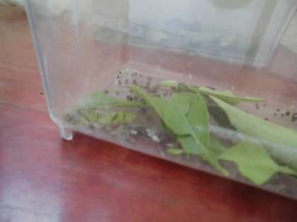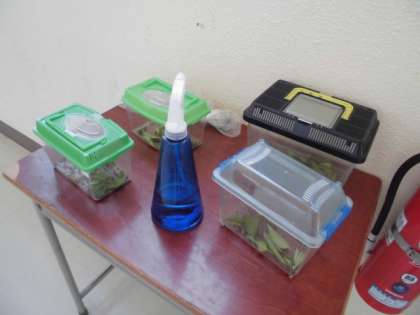 3年1組と2組の間の廊下でアゲハチョウの幼虫を飼育していました。