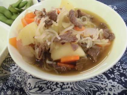 肉じゃがは、牛肉の風味が他の具材にもほどよく染み込み、とてもおいしくいただきました。