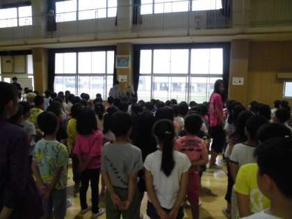 ひがももタイム(朝の時間)に運動会で歌う歌の練習をしました。