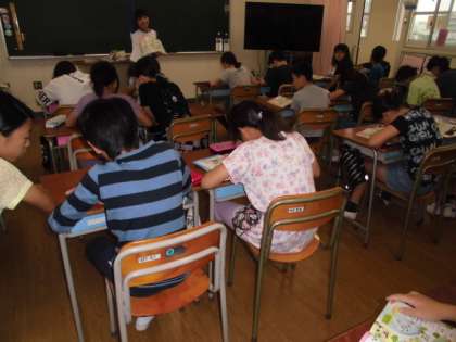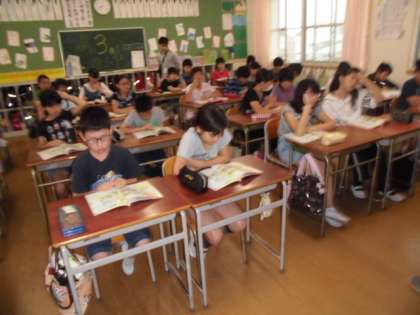 火曜日と木曜日のひがももタイム(朝の時間)は、ひがももイングリッシュタイムです。 6年生も教室で英語活動をしていました。