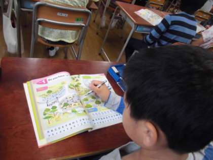 "How many 〜 ?"ということで、本にある動物の数を英語でそれぞれ答えていました。