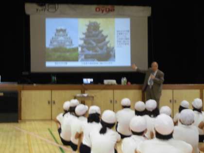 おどりの指導をしていただく前に大阪城館長の北川様より大坂城と大坂の歴史について、豊国おどりについてのお話をしていただきました。