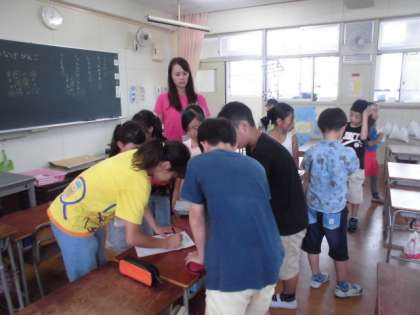 27日(水)に開催予定の「ひがももカーニバル」(縦割り班活動−子どもたちのお店めぐり)に向けて、「たてわりタイム」(縦割り班活動)を行いました。