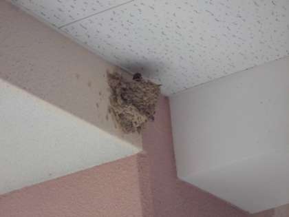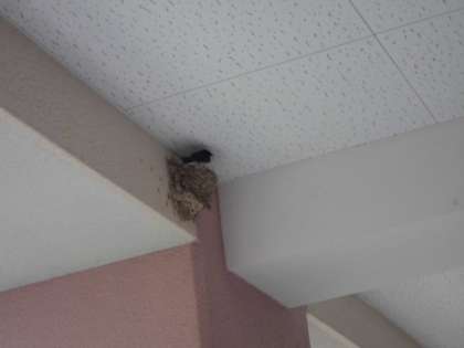 一度カラスに襲われたツバメの巣ですが、再びツバメが巣を修復し産卵しているようです。