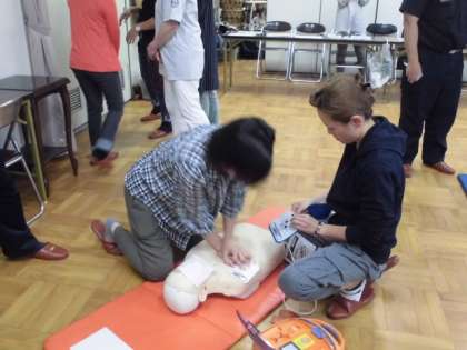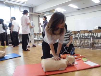 本校教職員は、事前にDVDの視聴講習を済ませていましたので15時30分からの実技講習に参加しました。