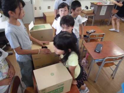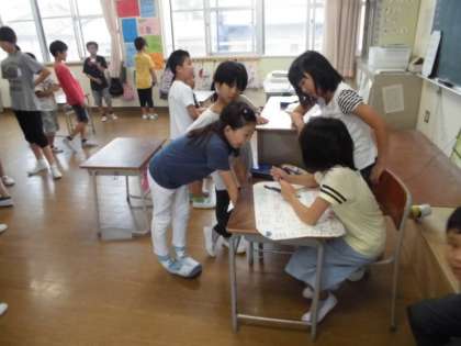 来週27日の水曜日に行う「ひがももカーニバル」(縦割り班でお店をしたり、お店巡りをしたりする活動)の準備を行いました。縦割り班で集まって準備をするのは今日が最後です。