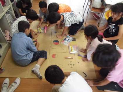 各縦割り班ごとに各教室で活動しています。
