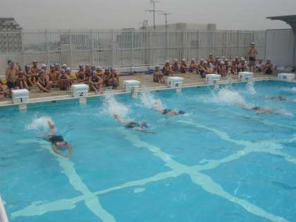 夏休みには、なみはやドームでの水泳記録会、校内では1kmにチャレンジする記録会があります。