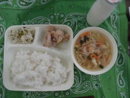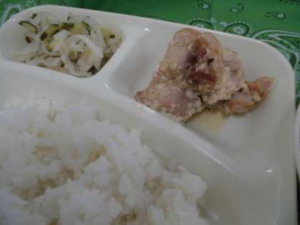 献立は、鶏肉のしょうゆマヨネーズ焼き、五目汁、切り干しだいこんのゆずの香あえ、ごはん、牛乳でした。