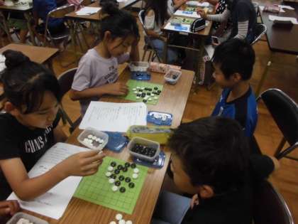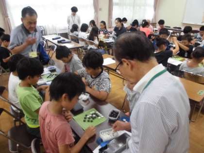 4年生の子どもたちは、囲碁についてすぐに理解したようで、早速、対局をしていました。
