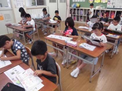 3年2組では、先週に続いてローマ字の練習をすることで、アルファベットを書いていました。