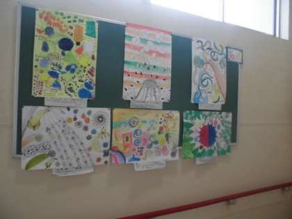教室前の廊下や階段の踊り場の掲示板に3年生、6年生の作品がそれぞれ展示されていました。どれも、力作です。ご来校の際は、ぜひご覧ください。
