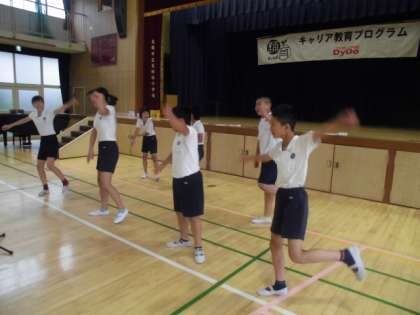 2時間目は、豊国踊りの一部を取り入れた創作ダンスの仕上げをグループごとにしていました。
