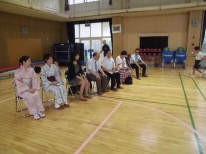 3時間目は、その発表会ということで、大阪城天守閣館長の北川様をはじめ、大阪市会議員山田様、ダンスのインストラクターの先生や豊国踊りの先生、関係者の皆様にも来校いただきました。