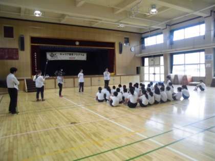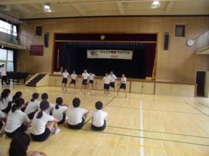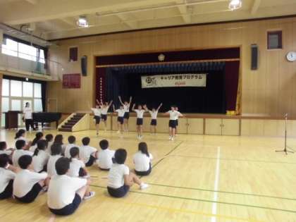 ダンス発表の講評を北川館長様、元宝塚歌劇団の朝宮真由様、真於夏希様からいただきました。子どもたちのダンスをほめていただきました。また、ダンスの心構えや本番で力を発揮するにはという話もしていただきました。