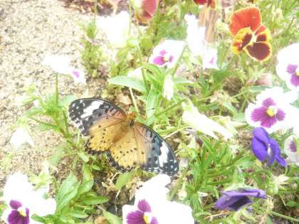 先日、バタフライガーデンの水やりをしていますと、きれいなチョウが飛んできました。タテハチョウの仲間だと思いましたが、特定することができませんでした。