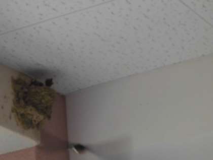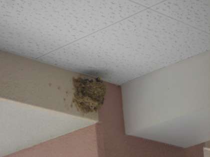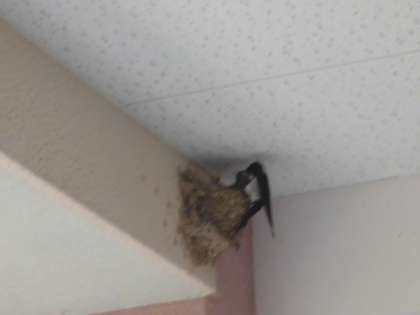 ツバメのひながずいぶん成長し、下から見ても巣から顔をのぞかせているのがわかります。