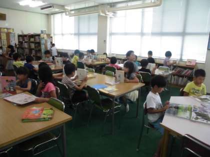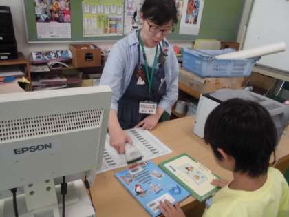 今日は金曜日、図書館一日あいてんでーです。図書館補助員の昌山さんが来られる日です。4時間目の2年生の図書の時間にいろいろとサポートしていただいてました。