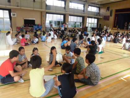 高学年児童が班をよくまとめて答えについて話し合っていました。