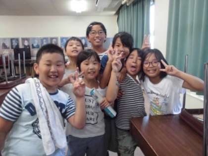 暑さを涼しい教室でしのぎながら、昼休みを楽しんでいます。