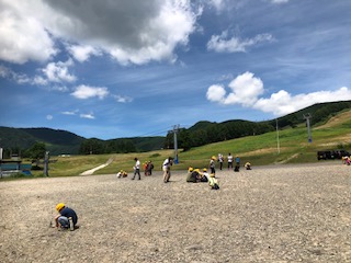 早く到着したので、宿舎前の広場で自由に過ごしています。全員元気です。