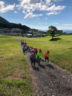 鉢伏山へ向かってスタート。全員、チャレンジします。