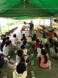 朝食は、カートンドックです。説明を聴いています。自分の食べる分は、自分で作ります。