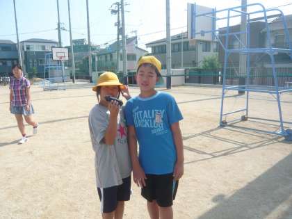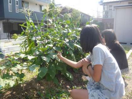 6年生が、今朝、学習園で育てているなすを収穫しました。