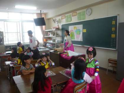 1年生に2・3年生がチマチョゴリ、パジチョゴリを着せてあげる活動だったからです。