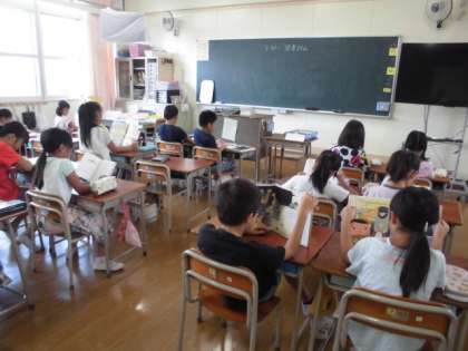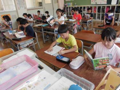 各教室では、子どもたちが自分で本を選んで静かに読書に集中していました。