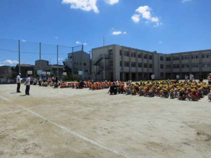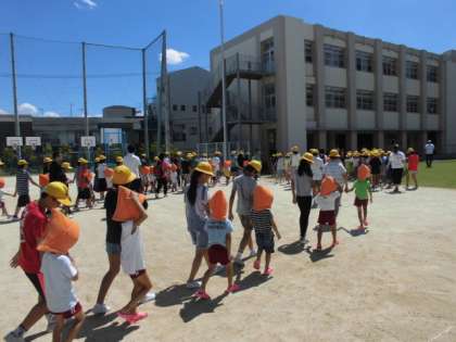 続いて津波に対しての二次避難ということで、幼児の園の園児たちが小学校校庭に来て、小学生とペアリングし校舎3階へ避難しました。