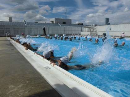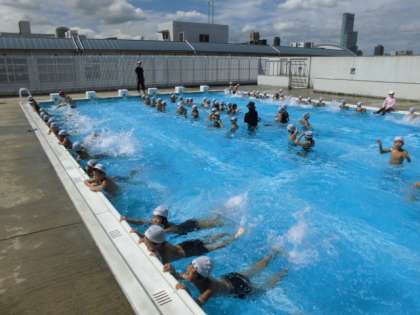 先週でプール水泳授業は終わる予定でしたが、台風等の影響で今週まで延長しています。