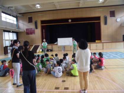 それに向けて、今日は4年生児童がスリーアイズについてゲームを通して地域の方から学ぶ機会を設定しました。