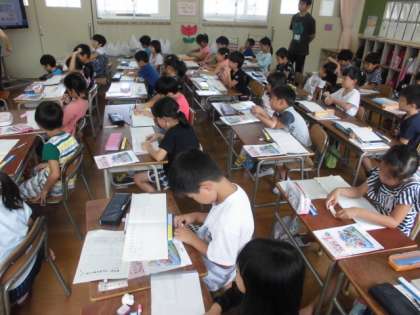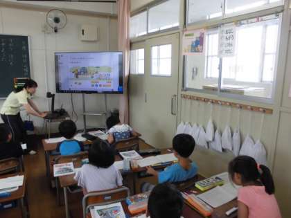 1年生の算数の学習で、デジタル教科書を使って指導をしていました。