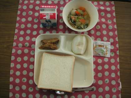 9月の給食に出る「なし」は、「日本なし」のなかまです。皮の色が茶色の「赤なし」と皮の色が黄緑色の「青なし」に分けられます。
