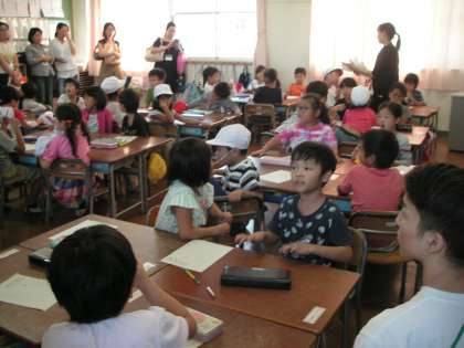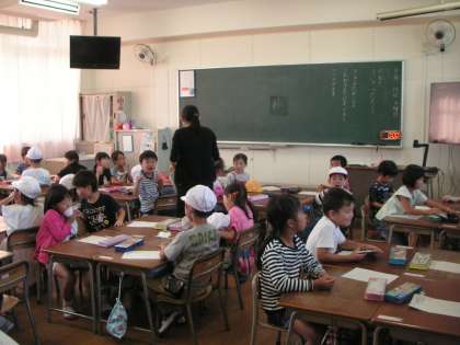後ろのお家の方々を気にしながら、元気な声が教室に響いていました。