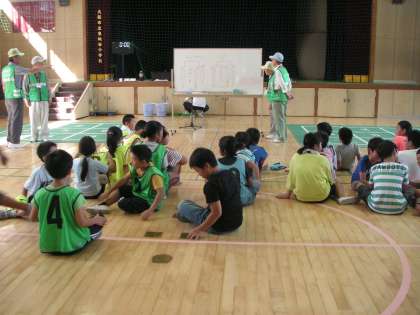 4年生 PTC集会 「スリーアイズ」講堂にて地域の方々に審判をしていただき、トーナメントで試合をしました。