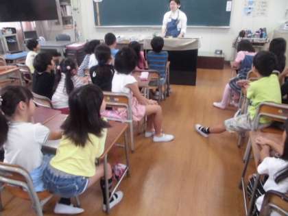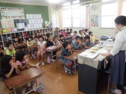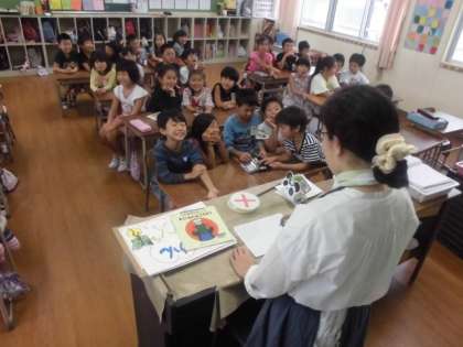今朝の読書タイムでは、図書館補助員の昌山さんが2年生に朝の読み聞かせをしていただきました。