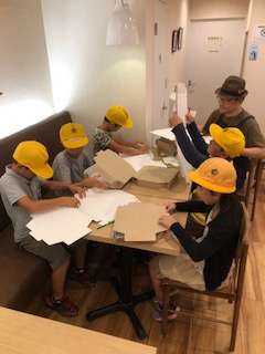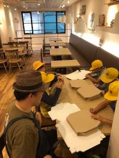 ピッツアを入れる箱作りを手伝わせていただいてます。