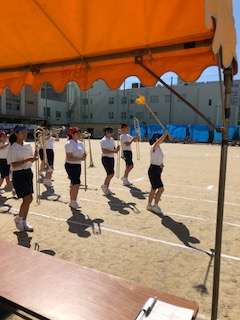 勝山中学校としての最後の運動会が始まりました。吹奏楽部の演奏による素晴らしい入場行進でした。