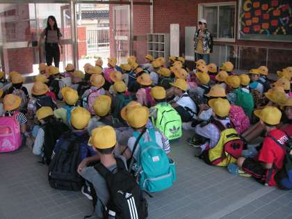 大型台風が去って昨日の強風も落ち着き、爽やかな晴天のもと 6年生は「自然体験教室」淡輪の大阪府立海洋センターに出発しました。