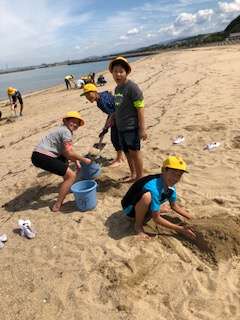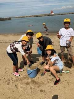 サンドアートは、活動班ごとに作ります。12:00までの制限時間。さて、どこまで仕上がるか。