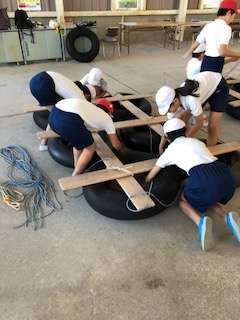 各班ごとに声をかけあいながら、組み立てています。