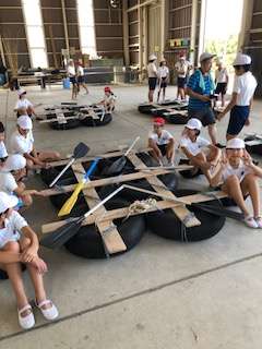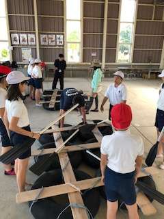 みんなの協力で、いかだが完成しました。